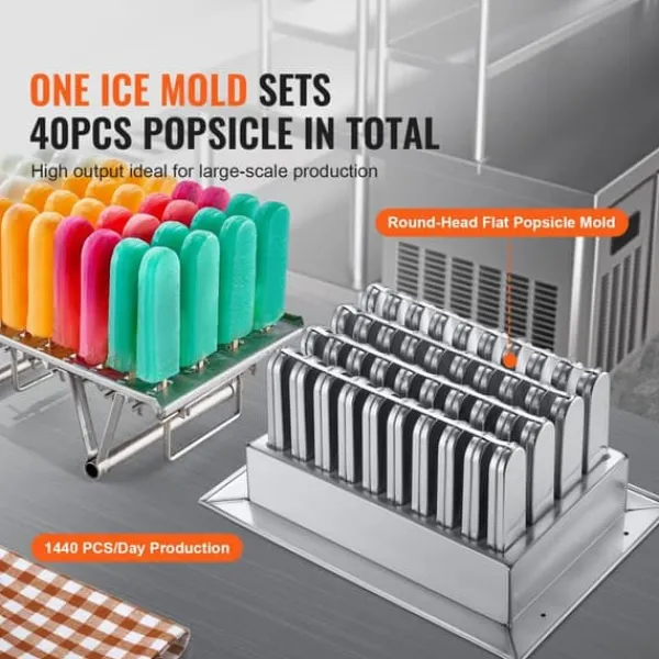 Med en enkelt form med en kapacitet på 40 stk ispinde, er denne kommercielle ispop-maskine i stand til at producere forskellige smagsvarianter i store mængder med en daglig produktion på op til 1440 stk. ispinde, der imødekommer kommercielle behov og forskellige forbrugerpræferencer. Dens store kapacitet sikrer en effektiv produktion og levering af ispinde.