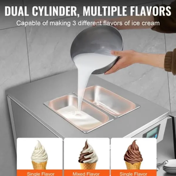 Alsidig anvendelse: Denne alsidige softice-maskine er ideel til fremstilling af et bredt udvalg af is-specialiteter, herunder vafler, kiks og kager. Den er en perfekt tilføjelse til isbarer, caféer, drikkevarer og små bistroer og løfter enhver kommerciel indstilling.