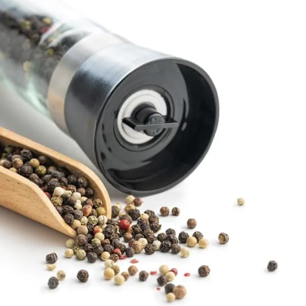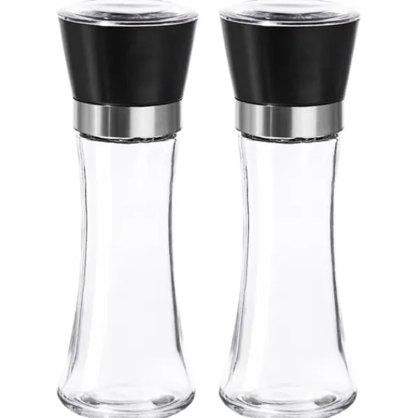 Sæt med to manuelle kværne, perfekte til peber og salt. Et must-have i ethvert køkken. Denne kværn giver dig mulighed for at male salt eller peber samt andre krydderier ordentligt. Maling lige før servering bevarer friskheden og frigiver krydderiernes aroma. Nem at rengøre og bruge. Takket være deres transparente design passer kværnene godt sammen med andet service. De er perfekte til restauranter. Manuelle kværne er altid en gennemprøvet gaveidé, for eksempel til en indflytterfest. Fuldstændig sikre for helbredet og fødevareneutrale. Originalt produkt fra det tjekkiske mærke Orion. Fremstillet i overensstemmelse med europæiske standarder.
