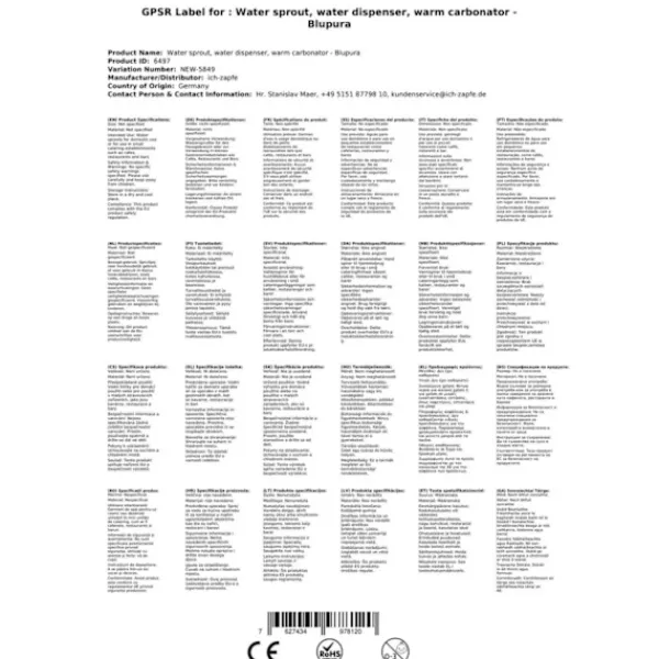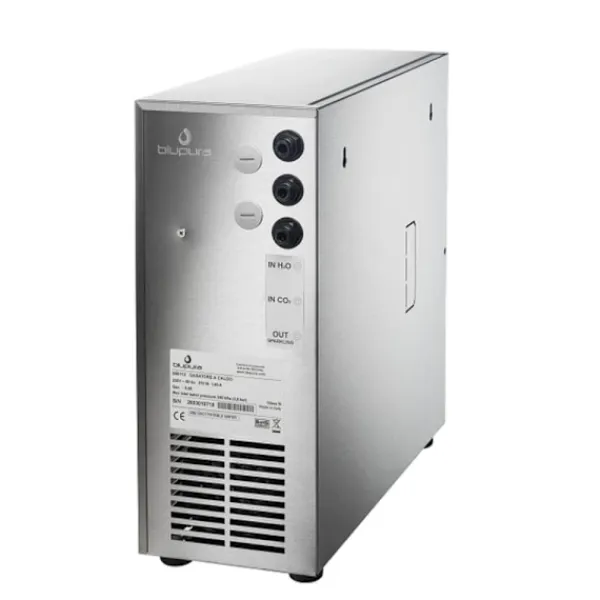 Sodavandsmaskine, danskvandsmaskine, drikkevandskøler, varmtvandsdispenser – Blupura Denne varme kulsyrer fra Blupura er den ideelle kulsyrer til hjemmet eller til små caféer, restauranter og barer. Den producerer 200 liter i timen ved et tryk på cirka 12 bar og har en messingpumpe og en elektronisk pumpestyring, der automatisk slukker for pumpen, hvis der mangler vand. Den robuste kulsyretank lavet af rustfrit stål af høj kvalitet er særdeles holdbar. Egenskaber: •Linjetilslutning til vand- og gasindtag: 8 mm AD (5/16” ) •Linjetilslutning til boblevandsudløb: 8 mm AD (5/16) maks. •Mål B/D/H: 170/440/420 mm •Vægt: 10,3 kg •Trækningseffekt: 220 L/t, 230 V, 50 Hz, 180 W, 1,65 A. Med denne drikkevandskulsyrepumpe kan du til enhver tid producere forfriskende brusende vand af høj kvalitet, spare penge og skåne miljøet. Med Blupura varm kulsyre er dette hurtigt og nemt. Prøv det!