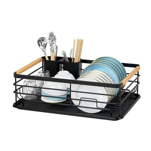 LIVIT Compact Black Dish Rack (43x32x14 cm) kombinerer moderne design med funktionalitet, hvilket gør det til et ideelt valg for små køkkener og bordplader. Dette kompakte stativ giver en organiseret løsning til effektiv tørring og opbevaring af dit køkkengrej.