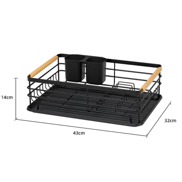 Kompakt design: Med dimensioner på 43 cm (L) x 32 cm (B) x 14 cm (H) er dette opvaskestativ pladsbesparende, samtidig med at det tilbyder rigelig opbevaringskapacitet.