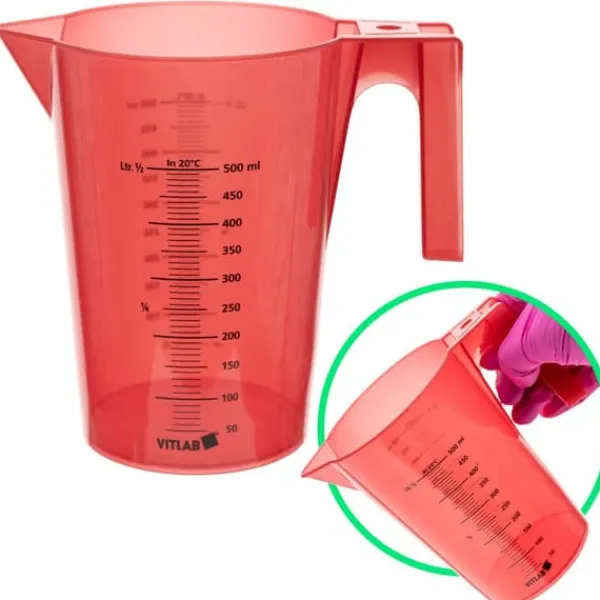 Transparent PP-bægerglas 500 ml lavet af højkvalitets polypropylen (PP) . Udstyret med en læselig, trykt skala hver 10 ml på begge sider og et stabilt håndtag med en profileret fordybning, der muliggør vanddræning under vask. Bægerglasset opfylder kravene til fødevarekontakt i overensstemmelse med forordning (EU) nr. 10/2011 og muliggør præcis dosering af væsker.