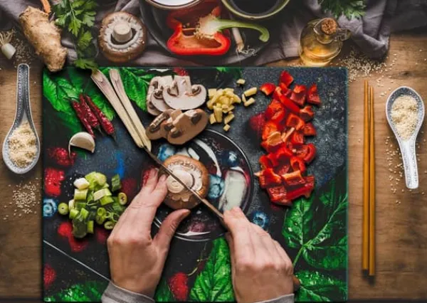 Mad- & Drikkeskabeloner>SKÆREBRÆT I GLAS 52x40 FRUGT