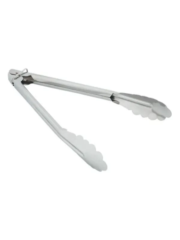 Producentnummer: HENDI 171707 Universaltang med lås er lavet af rustfrit stål af høj kvalitet. De vil blive brugt i konditorier og bagerier, og vil også give komfort ved grillning og arbejde på grillen. Produktet tåler opvaskemaskine. Parametre: – længde i mm: 250 Sættet indeholder: – serveringstang
