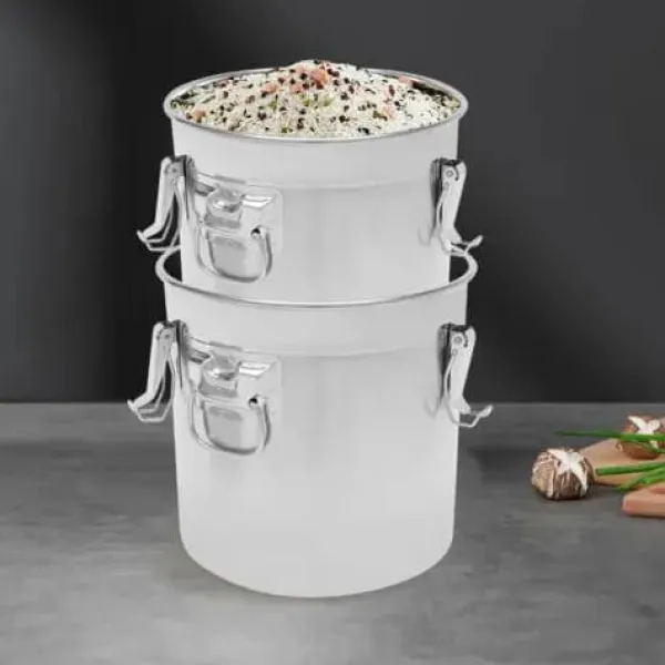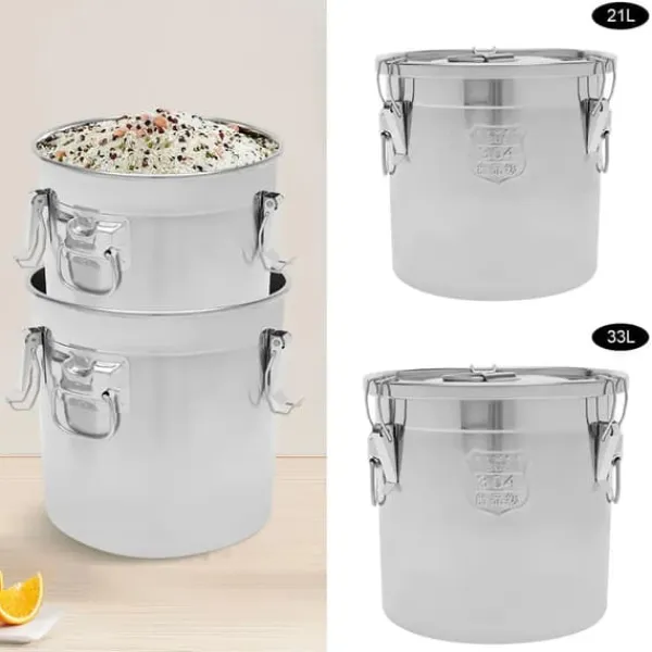21L lufttæt opbevaringsbeholder i rustfrit stål med tre låseclips Bevar smag, friskhed og kvalitet. Denne 21L beholder i fødevaregodkendt 304 rustfrit stål har tre clips og en silikonepakning, som giver en fuldt lufttæt forsegling. Ideel til spiritus, madolie, te, mælk og tørvarer – robust, lugtneutral og nem at rengøre.