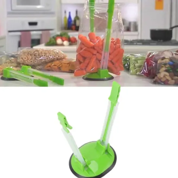 5、Hands Free: Fäst helt enkelt matpåsen under klämman och fyll så fyller du enkelt på mat utan att behöva använda händerna, precis som att ha ett extra par händer i köket. Du behöver inte oroa dig för att spilla mat när du lägger mat i förvaringspåsen.
