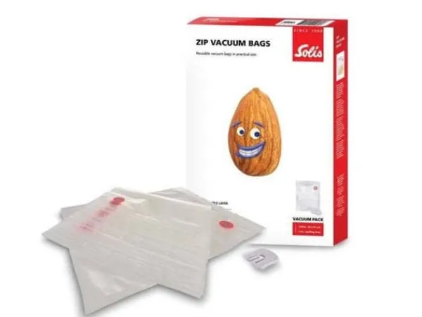Solis Zip vakuumposer, der måler 26 x 35 cm, er en praktisk og robust løsning til pakning af større portioner mad. De er genanvendelige, tåler opvaskemaskine og er lufttætte, så de er perfekte til ethvert køkken – både til almindelig opbevaring og sous vide-madlavning.