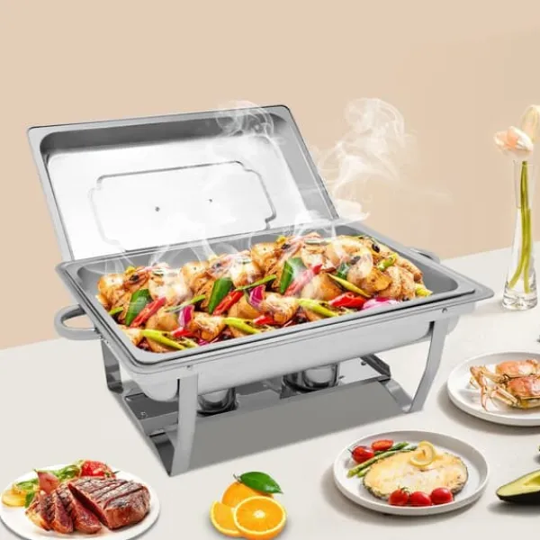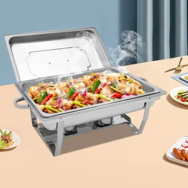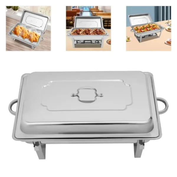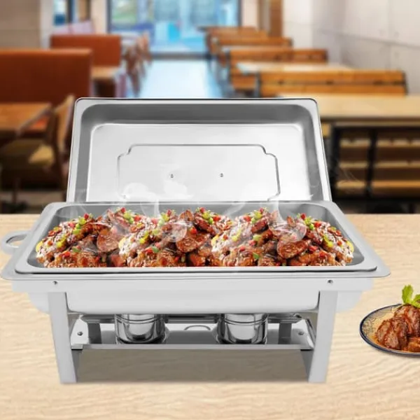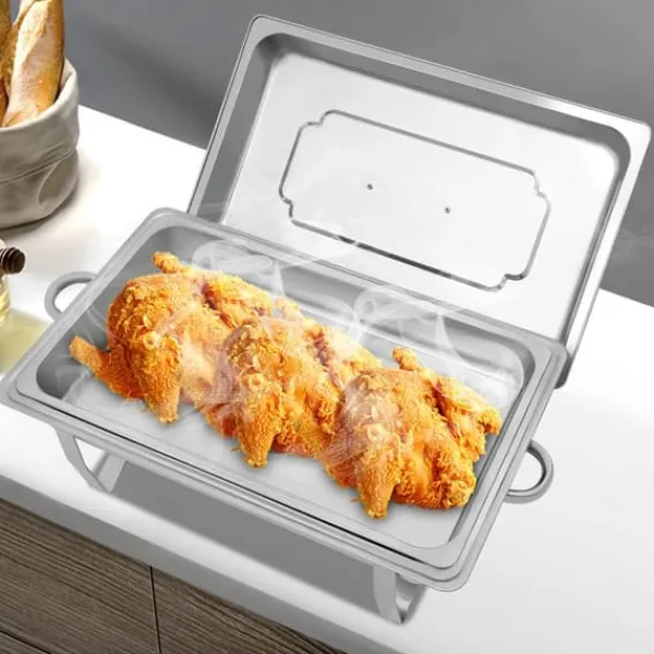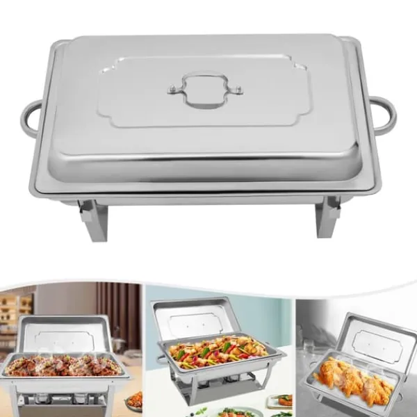 Rektangulær 9 L madvarmer i rustfrit stål – Sølv