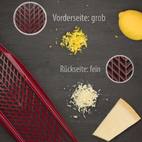Den originale Boerner rivejern PowerLine serie kan bruges på begge sider og river fint og groft. Riv frugt, grøntsager, ost, chokolade, citrusskal, rå grøntsager som gulerødder, radiser eller æbler og meget mere. Rivejernet PowerLine er en praktisk hjælper ved tilberedning af sunde måltider. Rivejernet er særdeles velegnet til rivning af hårde grøntsager og hård ost. Blødere oste skal opbevares i køleskabet et stykke tid, inden de rives. Rengør blot under rindende vand efter brug. Levering uden frugtholder, bestil venligst separat ved behov. Produktdata: Robust rivejern kan bruges på begge sider groft og fint rist stor ristflade nem og effektiv at bruge fri for blødgørere og BPA I farverne: rød, orange, grøn, violet og hvid