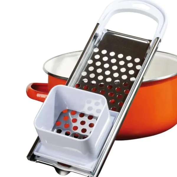 ✅ HOLDBART – Rivejern lavet af rustfrit stål i sølv af højeste kvalitet og holdbar hvid plastik. Rivejernet er ekstremt nemt at bruge og holdbart.