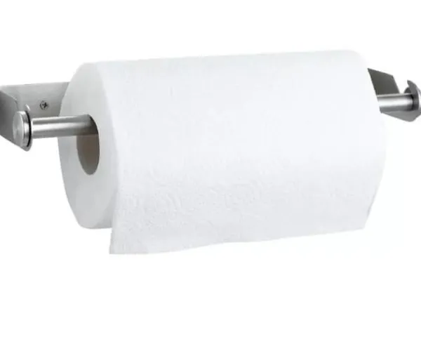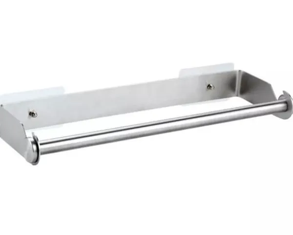 METALHOLDER TIL PAPIRHÅNDKLÆDER Elegant holder til et håndklæde eller folie, som kan limes på overfladen eller monteres med skruer – Sættet indeholder kun skruer til vægmontering (uden klistermærker) – Størrelse: 33×3,5×10,8cm.