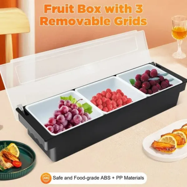 Allround opbevaringsboks i plast til madvarerEn solid opbevaringsboks i fødevaregodkendt PP-plast, perfekt til organiseret opbevaring af frugt, krydderier, korn og morgenmadsprodukter. Den kombinerer klaplåg, smart ruminddeling og aftagelige indergitre for maksimal fleksibilitet – i elegant sort.