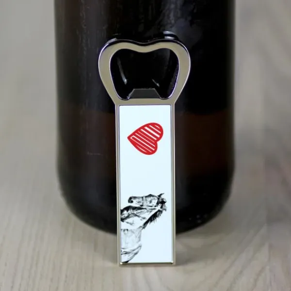 På en dag, der kræver en skål, vil denne åbner gøre fejringen endnu mere behagelig for enhver dyreelsker. Den klassiske oplukker er dekoreret med unik grafik med billedet af en hund, kat eller hest. Produktet har to magneter på bagsiden, takket være hvilke du kan fastgøre gadgetten til køleskabet og altid have den ved hånden. Du kan gøre det endnu mere charmerende ved at sende os et billede af dit kæledyr! Vi udskriver dem i de originale farver eller konverterer dem til “blyantskitse”-versionen, der er synlig i dette tilbud – beslutningen er din.