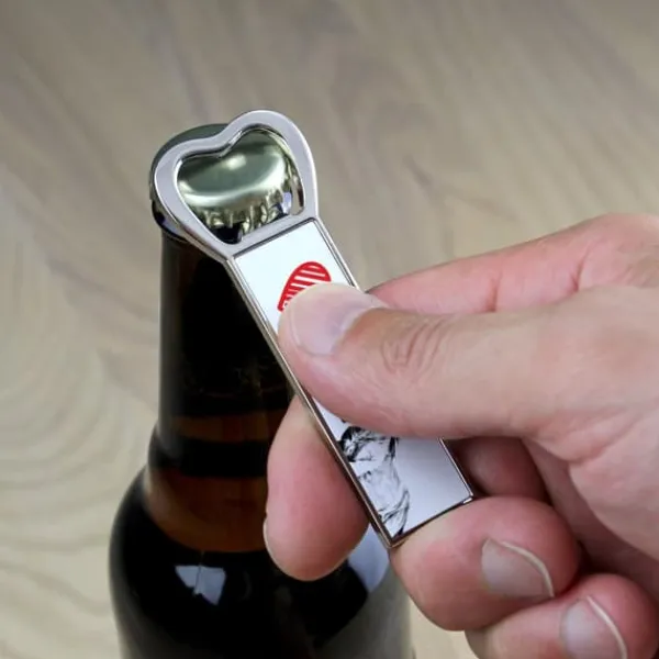 En flaskeåbner med et billede vil fungere godt som en lille gave til mange lejligheder, f.eks. til en housewarming-fest, en fødselsdagsgrill, i anledning af adoption af en hund, på fars dag eller drenges dag. Dette praktiske tilbehør vil helt sikkert glæde enhver fan af kulsyreholdige drikkevarer.