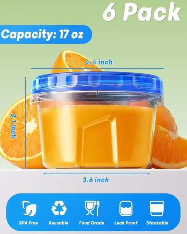 Alsidig opbevaring: Sættet indeholder 6 madkasser (500 ml) med låg – perfekt til supper, gryderetter, saucer, havregryn, snacks, pasta, morgenmadsprodukter og rester.