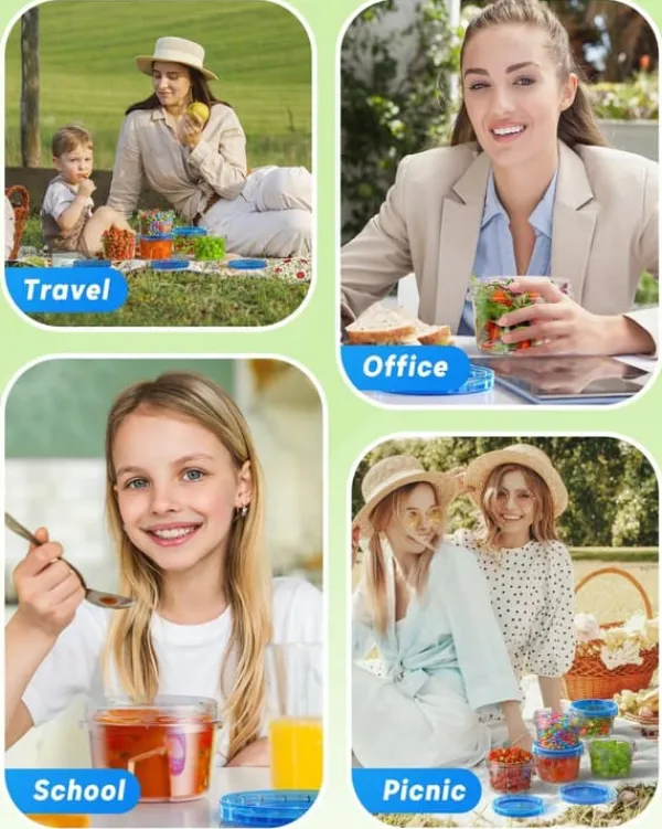 Lækagesikre skruelåg: De tætsluttende skruelåg forhindrer spild og holder maden frisk i længere tid – perfekt til at reducere madspild.