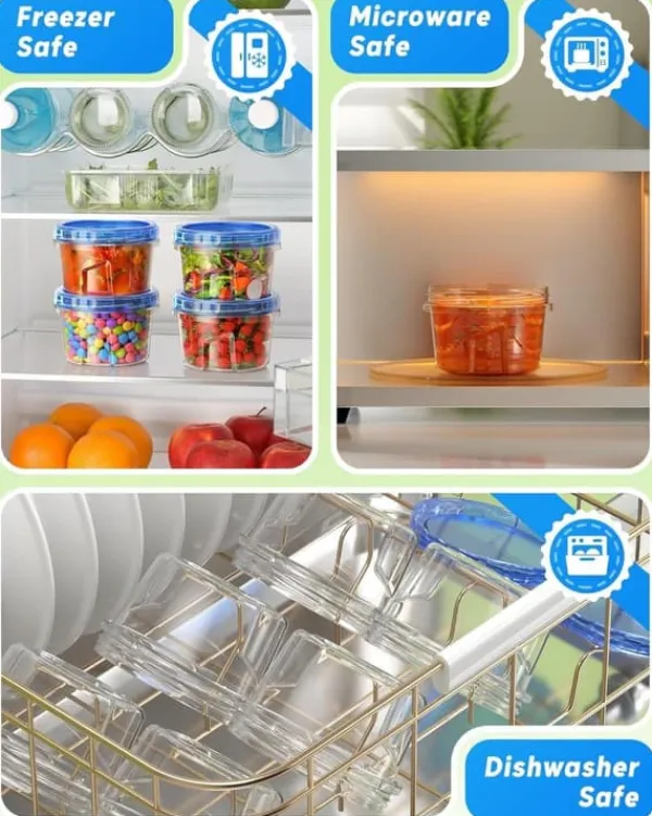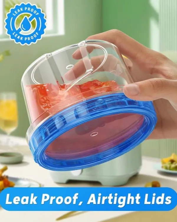 Designet til at blive stablet og maksimere pladsen i køleskabet, spisekammeret eller skabet. Let og praktisk at bære.