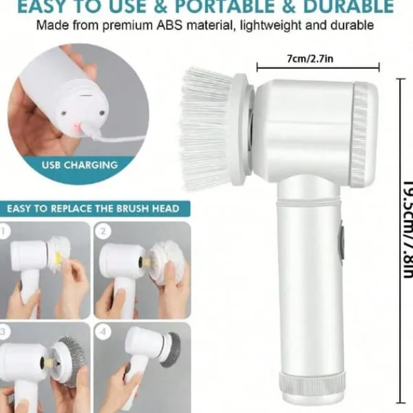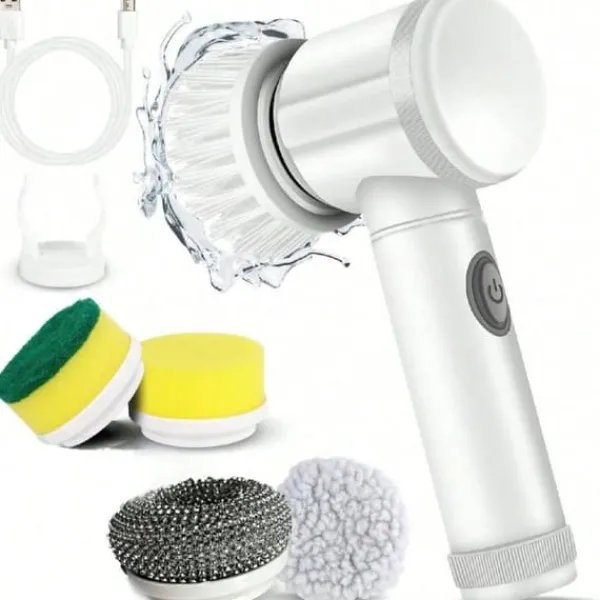 Denne elektriske rengøringsbørste er udstyret med 5 udskiftelige børstehoveder og er ideel til rengøring af køkkener, badeværelser, fliser, håndvaske og komfurer. Med en kraftig rotationshastighed på 350 omdr./min. og et genopladeligt 1500 mAh batteri giver den op til 80-100 minutters driftstid. IPX6 vandtæt design gør det muligt at bruge den sikkert i våde miljøer. Kompakt, effektiv og nem at bruge – din nye hjemmehjælper!