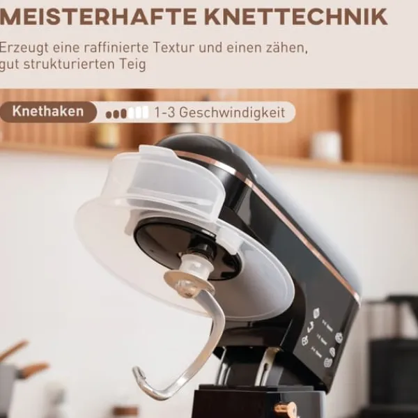 Kraftfuld og pålidelig: Med en robust 1400 W motor og integreret overophedningsbeskyttelse håndterer denne køkkenmaskine ubesværet selv den hårdeste dej – for perfekte resultater i ethvert bageprojekt.