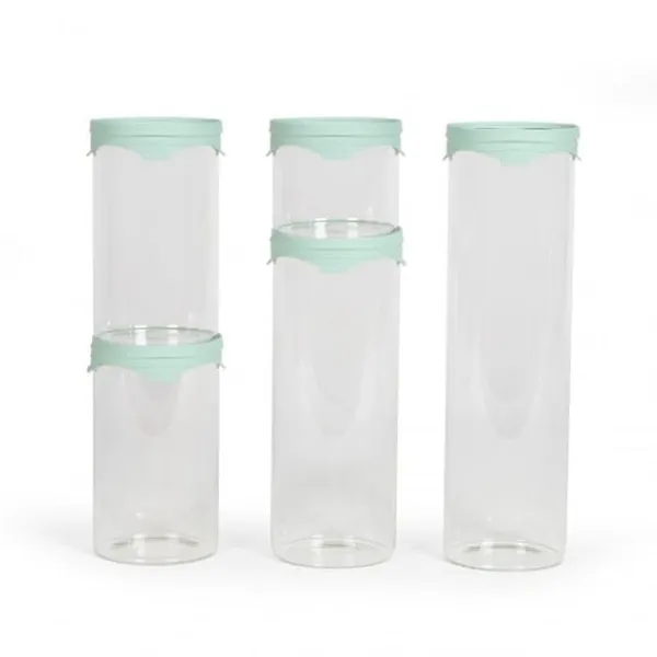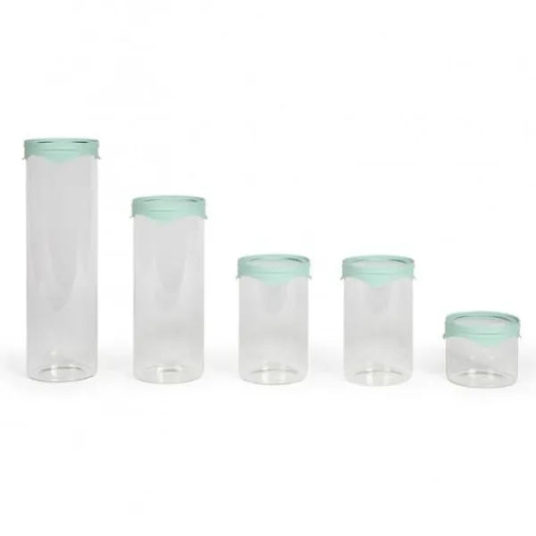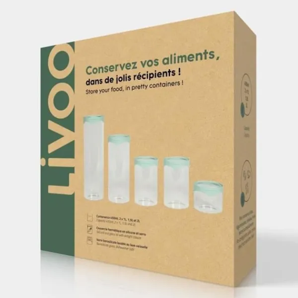 Sæt med 5 opbevaringskrukker – LIVOO – MEN399 – 5 krukker – 450 ml – Borosciliatglas – Silikone og glaslåg