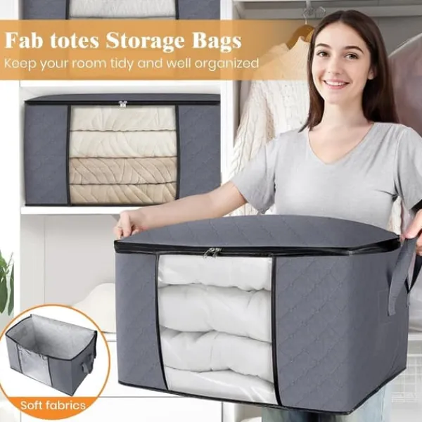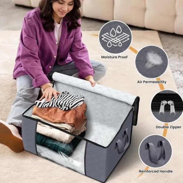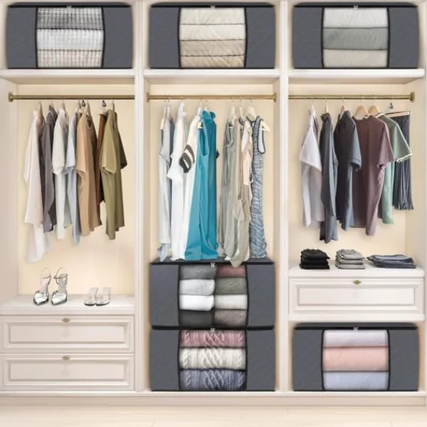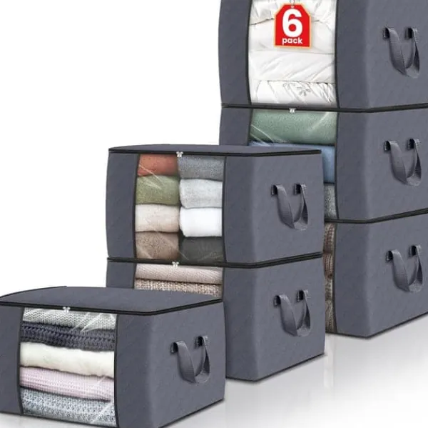Stof af høj kvalitet: Disse 6-pak opbevaringsbeholdere til organisering af tøj har en kapacitet på 60 liter. Tøjopbevaringsposen er lavet af højkvalitets, lugtfrit, åndbart ikke-vævet stof for at holde tøjet rent og pænt. Hver filtopbevaringspose måler 59,6 x 33,8 x 30,8 cm.