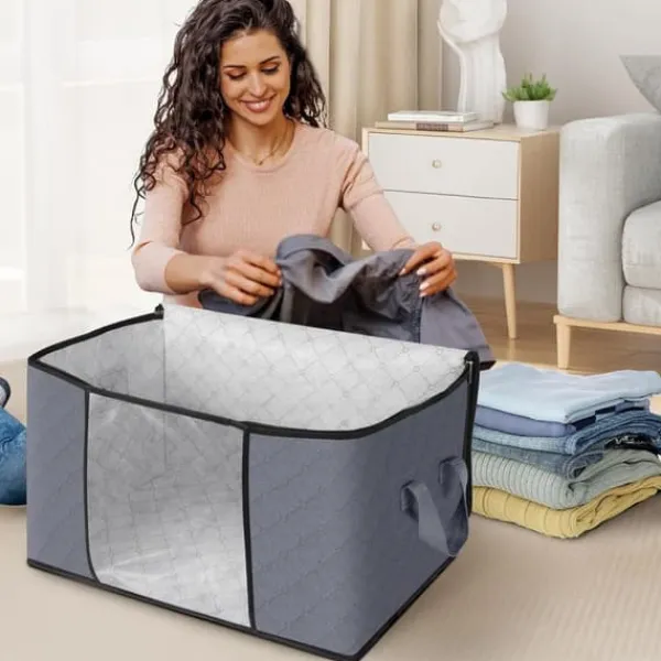 Forstærkede håndtag: Håndtagene på opbevaringsposen er forstærket med to lag ekstra tykt stof, hvilket fordobler lasteevnen. Disse poser er nemme at bære og transportere, når du flytter eller læsser tunge genstande.
