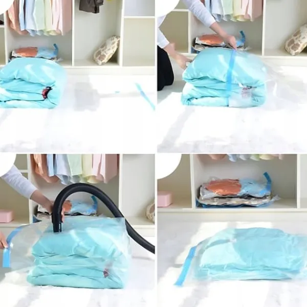 Vakuumpose Genanvendelig pose Vakuumfilm til tøj Sengetøj 50×70 Pladsbesparende og effektiv beskyttelse✅ Op til 80% mere plads Vakuumposen reducerer mængden af opbevarede genstande, ideel til små rum.✅ Effektiv beskyttelse Beskytter tøj, sengetøj og andre tekstiler mod støv, fugt, vand og møl.✅ Genanvendelig Solid lukning og slidstærkt materiale muliggør gentagen brug. ✔️ Pladsbesparende ✔️ Effektiv beskyttelse ✔️ Genanvendelig ✔️ Hurtig og nem at bruge Hvordan fungerer en vakuumpose? ➡️ Kom ting i posen – Det kan være tøj, sengetøj, tæpper, puder eller håndklæder. ➡️ Luk posen med en lynlås – En tæt forsegling giver langvarig beskyttelse. ➡️ Luftsugning – Brug en støvsuger til at suge luften ud, og luk derefter ventilen. ➡️ Færdig! – Tingene er komprimeret, beskyttet og klar til opbevaring. ❇️ Dette er vigtigt! Besvar 3 spørgsmål for at finde ud af det! ➡️ Kæmper du med pladsmangel i din garderobe? En vakuumpose sparer op til 80% plads. ➡️ Vil du beskytte tøj og sengetøj mod fugt? En tæt forsegling beskytter tekstiler mod støv, vand og møl. ➡️ Har du brug for en praktisk opbevaringsløsning? Takket være dens solide konstruktion er posen genanvendelig. ✔️ Volumenreduktion ✔️ Fugtbeskyttelse ✔️ Ideel til rejser og derhjemme ✔️ Høj kvalitet Hvordan bruger man bedst en vakuumpose? ✔️ Skabsorganisering – Perfekt til opbevaring af sæsonbestemt tøj og sengetøj. ✔️ Rejser – Giver dig mulighed for at pakke flere ting i din kuffert uden at optage ekstra plads. ✔️ Kælder- og garageopbevaring – Beskytter tekstiler mod fugt og snavs. Tekniske specifikationer Mål: 50 x 70 cm Materiale: Holdbar vakuumfolie Lukning: Lynlås + luftindsugningsventil Tilsigtet anvendelse: Tøj, sengetøj, tæpper, puder Anvendelse: Genanvendelig ⬇️ Ofte stillede spørgsmål ❓Q: Kan posen bruges flere gange?➡️ Ja, den er holdbar og designet til genanvendelig brug.Q: Passer posen til alle støvsugere?➡️ Ja, ventilen er universel og passer til de fleste støvsugermodeller.Q: Kan man opbevare sengetøj i den?➡️ Ja, posen er ideel til sengetøj, tæpper, puder og tøj.Q: Vender ting tilbage til deres oprindelige form efter at være taget ud af posen?➡️ Ja, tøj og tekstiler genvinder deres volumen efter et par minutter.Q: Kan poserne bruges til opbevaring i kælderen?➡️ Ja, de beskytter ting mod fugt og støv, hvilket gør dem velegnede til kældre og lofter.