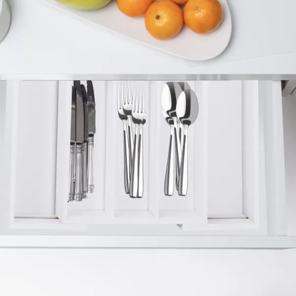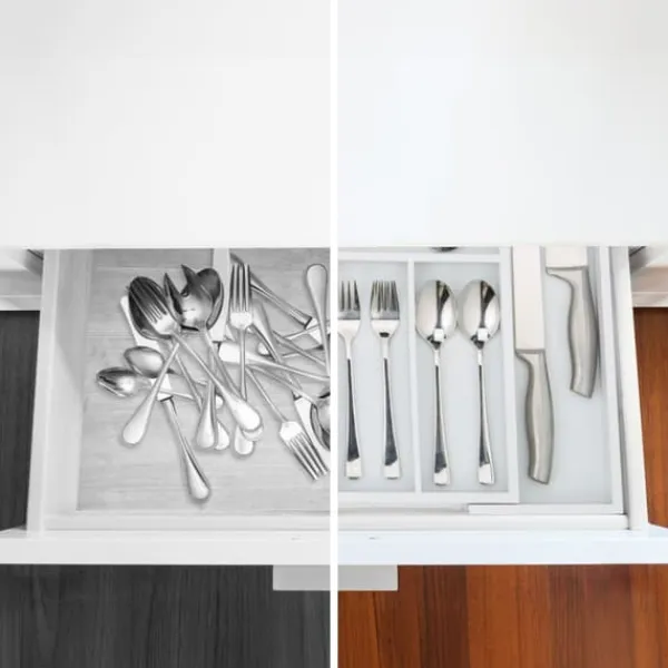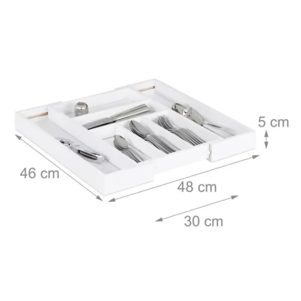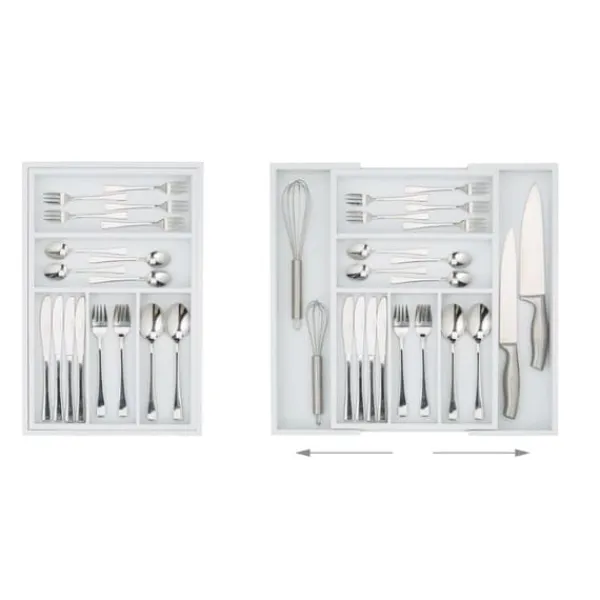 Hold dine køkkenskuffer ryddelige og stilfulde med denne hvide bambus bestikbakke, designet til at organisere bestik og større køkkenredskaber. Den justerbare bredde og de mange rum gør det nemt at tilpasse opbevaringen efter dine behov, så alt altid er inden for rækkevidde. Det rene, moderne look passer til enhver køkkenindretning.