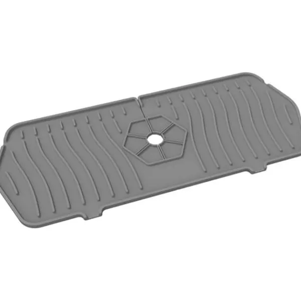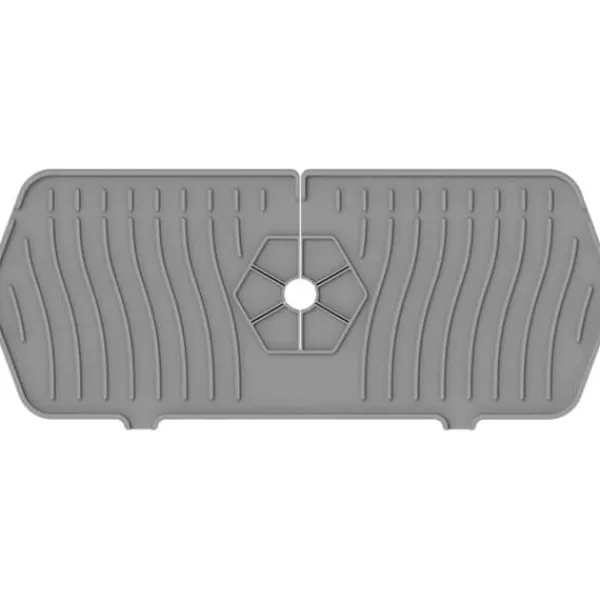 Denne vaskemåtte i silikone er ikke kun praktisk, men også stilfuld med sin neutrale grå farve. Den er lavet af fødevaregodkendt silikone, hvilket gør den både holdbar og sikker til kontakt med fødevarer. Måtten er nem at rengøre og kan rulles sammen, så den er nem at opbevare, hvilket gør den til en god køkkenhjælper, der holder vasken tør og ren.
