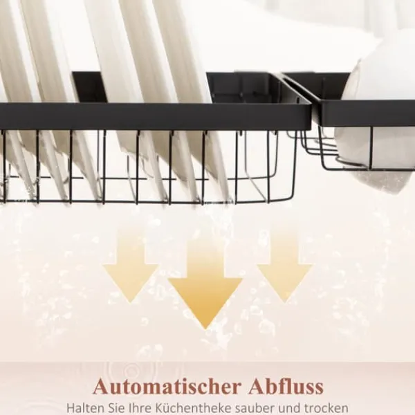 - Inkluderer skåleholder, tallerkenrække, frugtkurv, to bestikholdere, opvaskemiddelholder, knivholder, fem kroge og skærebrætsholder