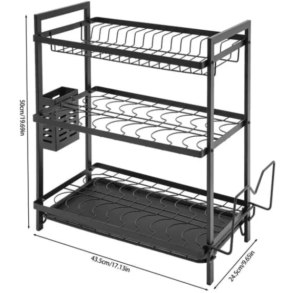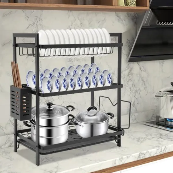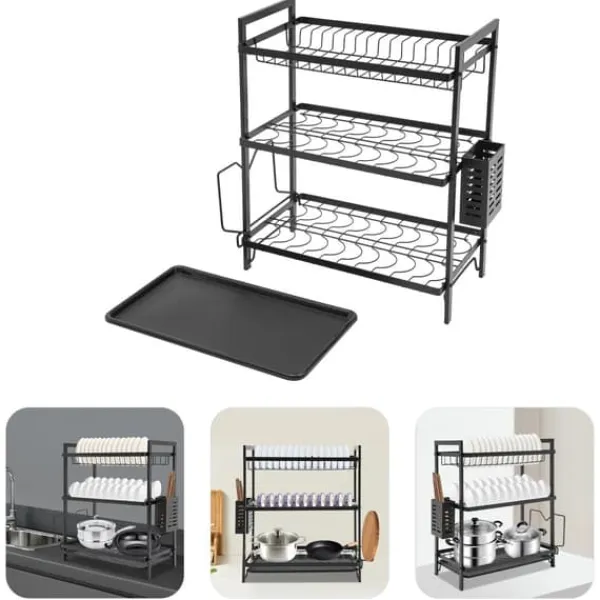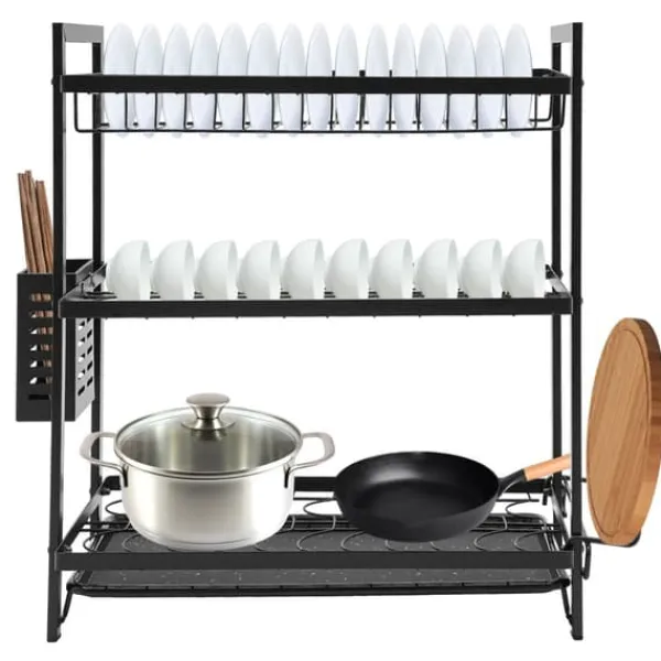 3-etagers opvaskestativ – tør hurtigt, opbevar pæntDette solide opvaskestativ med 3 etager forener gennemført funktion og holdbare materialer. Den sorte finish passer perfekt i moderne køkkener og giver ryddelig opbevaring samt effektiv lufttørring.