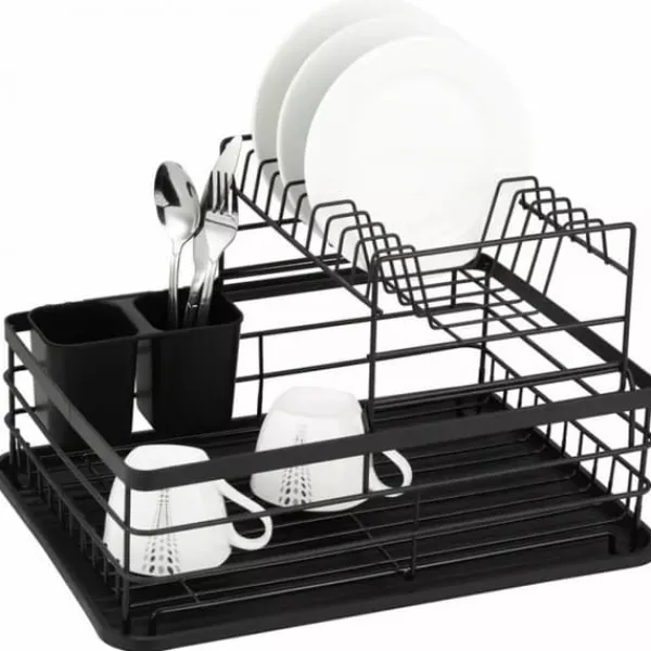 Tørretumbleren vil finde sin anvendelse i både store og små køkkener. Den universelle farve får den til at se godt ud i ethvert interiør. Opvaskeafløbet er desuden udstyret med en praktisk bestikbeholder. Opdelingen i 2 rum gør det nemt at sortere skeer, gafler og knive. Produktet gør det nemmere at holde orden i køkkenet. Opvasketørreren i to niveauer er stabil, hvilket sikrer sikker brug. Produktet har specialdesignede ben, der er solidt forbundet til tørretumbleren. Takket være dette er der ingen risiko for at vælte, selv når den er tungt læsset med service. Egenskaber: -Højkvalitets pulverlakeret metalramme -Slidstærk metalkonstruktion -Lille afløb med riller til at holde et maksimalt antal tallerkener -Bakke i bunden forhindrer køkkenet i at blive vådt -Kun håndvask, tør umiddelbart efter vask -Aftagelig plastikbestikafløb Mål: 43 x 32 x 27 cm