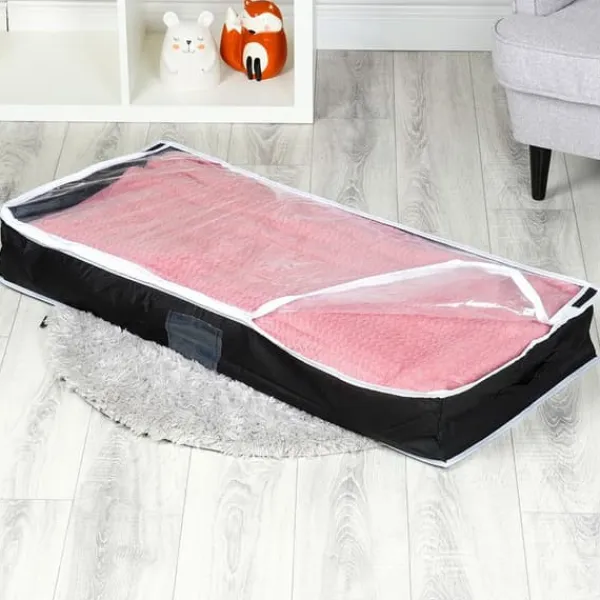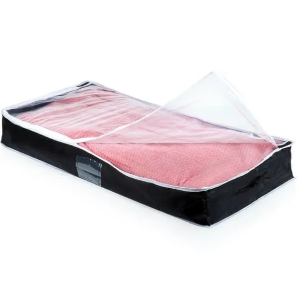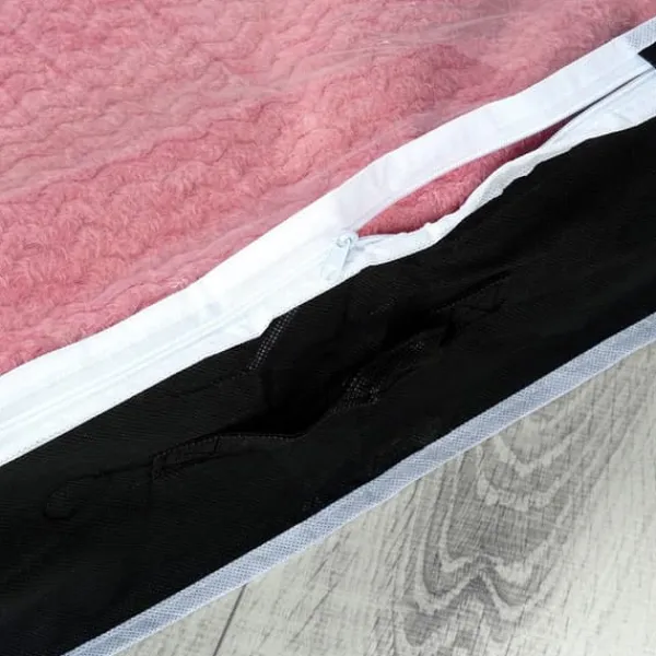 Praktisk sengetøjsbetræk – Praktisk betræk til sengetøj, tæpper, puder og tøj. Det beskytter sengetøj mod fugt, støv, møl og andre eksterne faktorer. Betrækket sikrer praktisk opbevaring af genstande i et klædeskab eller under sengen. Betrækket har målene 100 x 45 x 16 cm og en kapacitet på 70 l.