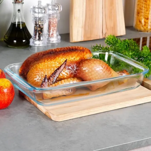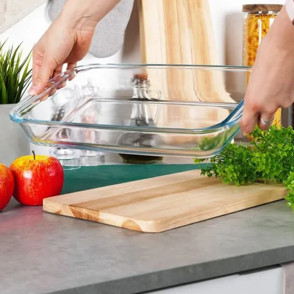 Et varmebestandigt rektangulært fad til gryderetter og stegning. Behageligt at bruge takket være dets praktiske håndtag. Fadet er ideelt til tilberedning af bagværk og kan også bruges direkte til servering. Fadets glatte overflade gør det nemt at holde rent. Følg reglerne for langsom opvarmning og afkøling ved brug, og tilsæt ikke koldt eller varmt vand. Stil ikke fadet på en direkte varmekilde.