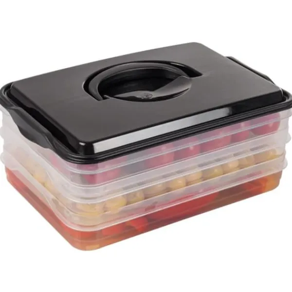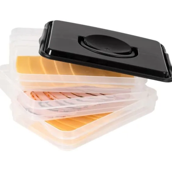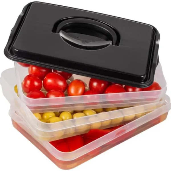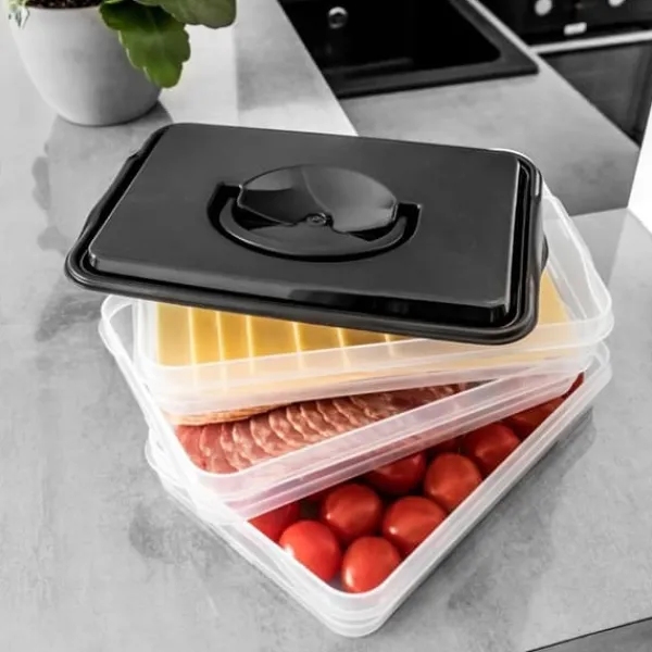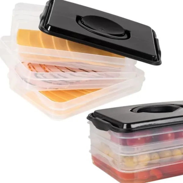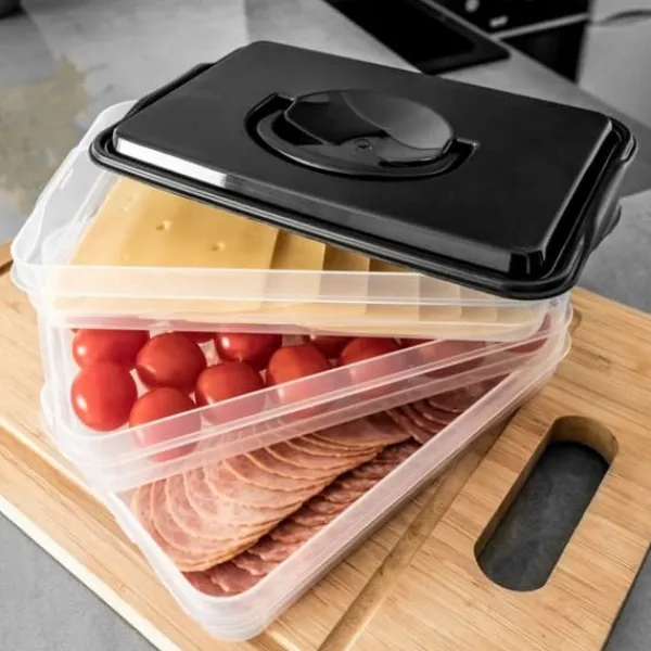 Tre-lags fødevareopbevaringsbeholder – ideel til pålæg, ost, grøntsager og andre produkter. Hjælper med at organisere plads i køleskabet, adskiller mad og lugt.