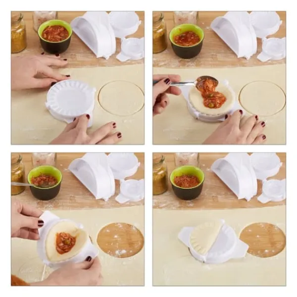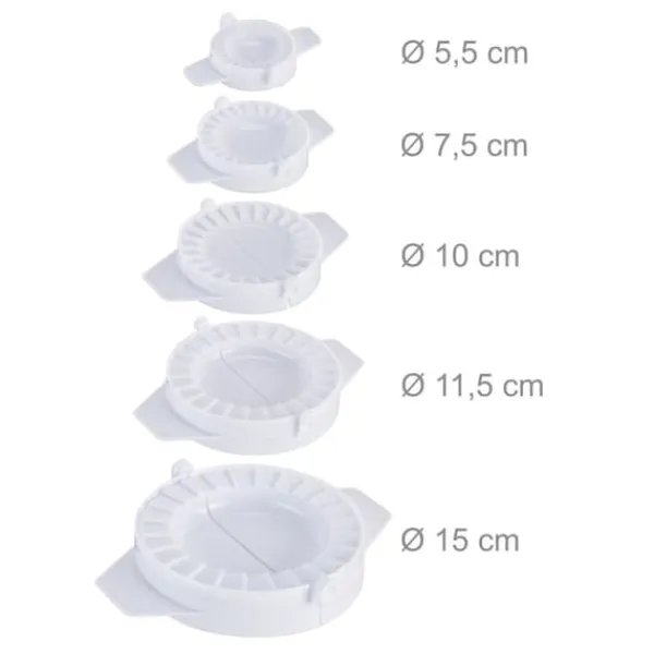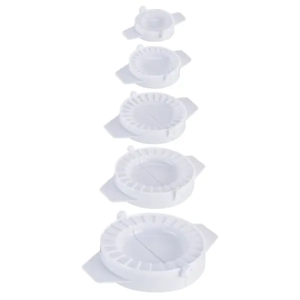 Lav lækre hjemmelavede ravioli, empanadas, pierogi og meget mere med dette praktiske sæt bestående af ni udstikkere i forskellige størrelser, udstikkerne har nemme sidehåndtag, en zigzagkant for effektiv forsegling og er fremstillet af holdbar plast for langvarig brug., Sæt inkluderer 9 ravioli-udstikkere i forskellige størrelser, Materiale: 100% PP-plast, Farve: Hvid, Samlet vægt: ca. 260 g