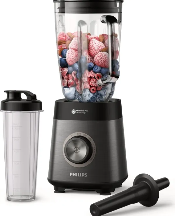 Användningen av hårda ingredienser i smoothies, såser och soppor är nu också möjligt med Philips 5000-seriens mixer. Både frysta bär och nötter blandas enkelt i maskinen, varefter automatisk rengöring med ett knapptryck garanterar enkel användning.