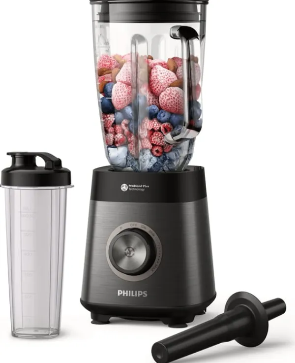 - En rymlig och maskintvättbar ProBlend Plus glaskanna och en mindre mixerflaska att ta med sig