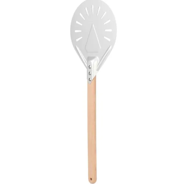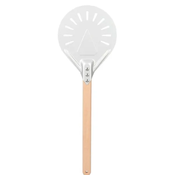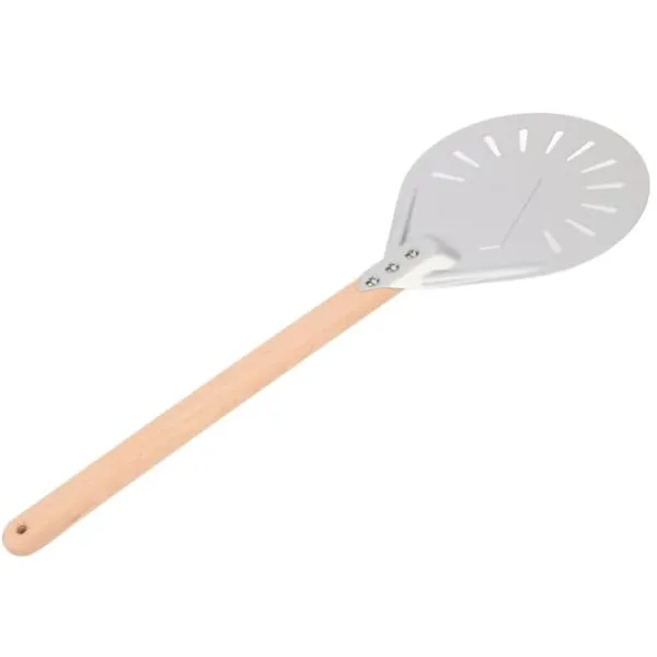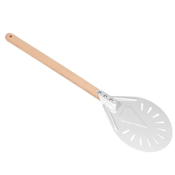 Denne pizzaspatel er ikke kun praktisk, men også alsidig. Den giver dig mulighed for nemt at flytte din pizza fra arbejdsstationen til pizzaovnen, hvilket gør bagning til en leg. Perforeringerne på den drejelige spatel hjælper også med at frigive overskydende mel fra bunden af dejen, hvilket reducerer risikoen for brændte skorper.