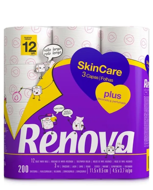 Renova Skin Care Plus Toiletpapir 12 ruller En ny dimension af komfort, som din hud fortjener. Langvarig fornøjelse: Skin Care Plus er et toiletpapir, der består af 3 gange længere papirruller med 200 ark papir for sensationel komfort og velvære. Den er subtilt parfumeret og giver ekstra pleje, mens den stimulerer sanserne. Den lyserøde, udsmykkede dråbe tilføjer prikken over i’et af sofistikering til Renova-papir af højeste kvalitet. Hvidt toiletpapir Dekoreret med pink Renova branding Ekstremt blødt og absorberende 12 ruller pr. pakke Subtilt parfumeret 3-lags 200 ark pr. rulle 23m papir pr. rulle Dermatologisk testet FSC C136137 certificeret Pakkemål: 37,5 x 12,5 x 38cm Dette produkt er lavet af andet FSC®-certificeret materiale. Ved at vælge dette produkt understøtter du ansvarlig forvaltning af verdens skove. Producent: Renova EAN-kode: 5601028026130 Oprindelsesland: Portugal