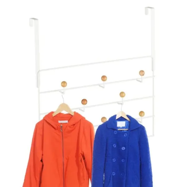 Knagerække i metal og træ. Vil du hænge frakker, tasker eller andet tilbehør, men mangler plads? Denne moderne dørbøjle er ideel til soveværelset, gangen eller teenageværelset. Med sine 10 kroge tilbyder denne robuste dørbøjle masser af opbevaringsplads og hjælper dig med at organisere dit hjem. Knagerækken er velegnet til plane døre og hænges nemt på døren.