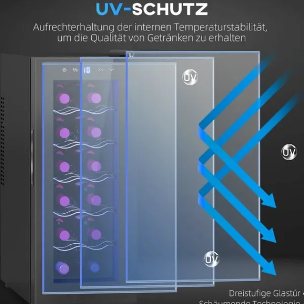 Hold altid dine drinks optimalt kølet med Rootz -vinkøleskabet. Nyd stille og hurtig dobbelt termoelektrisk afkøling med lavt energiforbrug i klassen E. Ideel til arbejdsoverflader, denne kompakte vinkøler passer problemfrit ind i enhver lejlighed eller hjemmebjælke. Flaskekøls UV-beskyttende glasdør sikrer, at alle drinks, fra Prosecco til øl, bevarer deres fremragende smag.