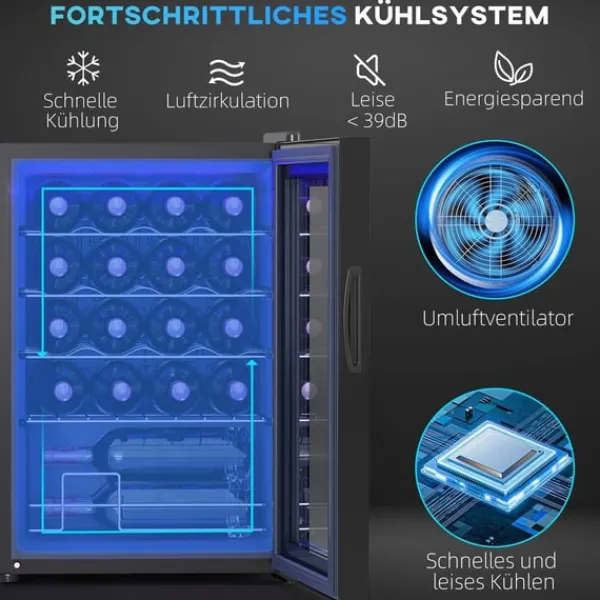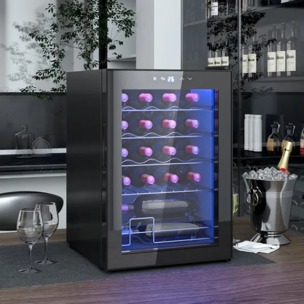 Denne rootz glasdørvinskøleskab holder 20 flasker på fem kromstativer med justerbar konfiguration. Stille og effektiv køling, præcis temperaturkontrol (5-18 ° C) og UV-resistent glasdør. Ideel til køkken, hjemmekontor eller hjemmebar.