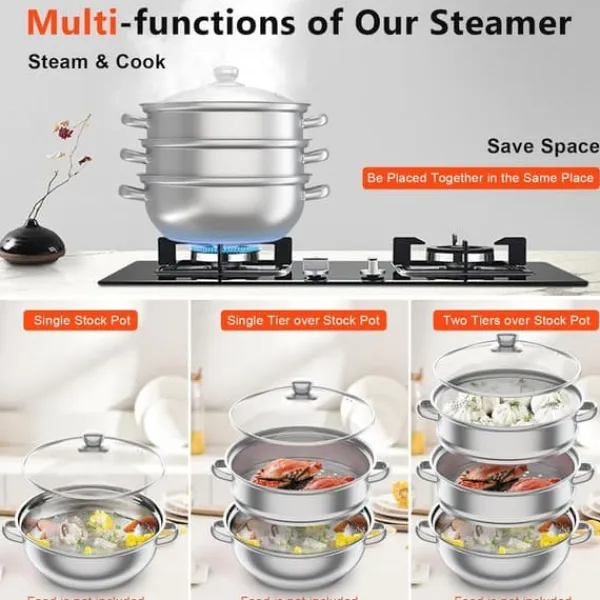 - alsidige madlavningsmuligheder: forvandl din køkkenoplevelse med et 3-niveau dampkogesæt i rustfrit stål, der giver dig mulighed for effektivt at tilberede en række sunde retter, samtidig med at den naturlige smag og næringsstoffer i din mad bevares.