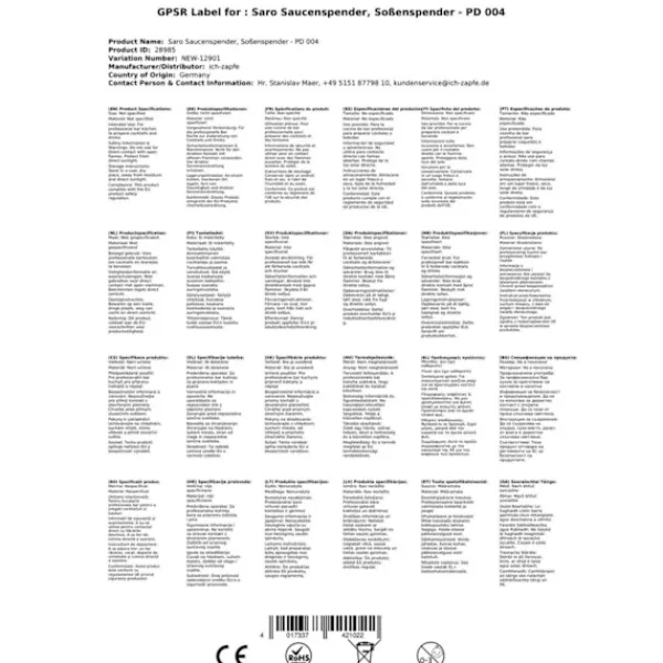 Sauce dispenser, dispencer til sauce – Saro Model PD-004 Er du på udkig efter den perfekte sauce dispenser til din bar eller restaurant? Så er denne Saucenspender lige noget for dig! Den er fremstillet i rustfrit stål og krom, samt plast, og dens dosering kan nemt justeres til at udlevere den mængde, du ønsker – op til 30 ml per dispencering. Dette produkt er velegnet til både varme og kolde saucer, og dens dyse kan blokeres for at opretholde hygiejnen. På trods af dens solide vægt på 2 kg, er den alligevel nem at flytte rundt, og dens størrelse på B 117 x T 117 x H 335 gør den til et bekvemt supplement til din bar eller restaurant. Med dens store kapacitet på 2,25 liter kan du servere sauce i store mængder og hurtigt tømme skålen. Dette er en praktisk og effektiv tilføjelse til ethvert køkken, hvor hurtig service og minimering af spild er afgørende. Kort sagt er denne Sauce Dispenser det ideelle værktøj til professionelle, som ønsker en pålidelig dispenser til deres bar eller restaurant. Køb en i dag og gør din hverdag nemmere og mere effektiv! •Fremstillet i robust og holdbart materiale, herunder rustfrit stål og krom, samt plast •Let justerbar dosering til op til 30 ml •Optimal størrelse på B 117 x T 117 x H 335 •2,25 liters kapacitet til store mængder saucer •Blokerbar dyse for at opretholde hygiejnen og minimere spild. Køb denne praktiske og effektive Saucenspender i dag og oplev en nem og hurtig måde at servere saucer på!