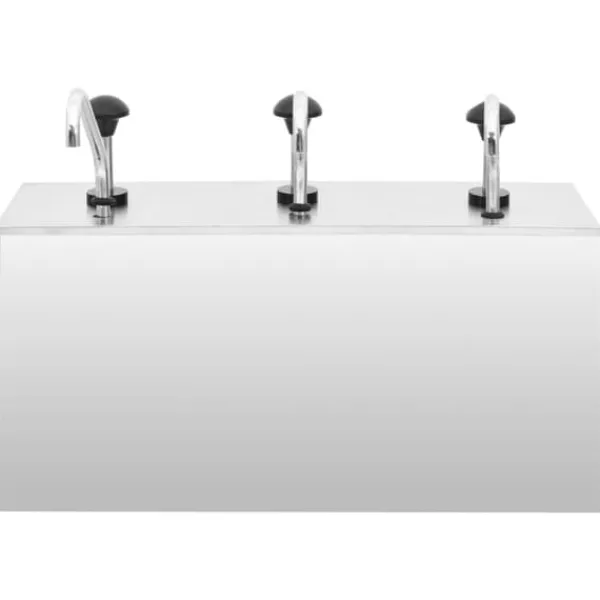Denne tilbehørsdispenser med pumpe er lavet af rustfrit stålmateriale af høj kvalitet. Alle dele, der kommer i kontakt med fødevarer, er lavet af 304 rustfrit stål. Så denne dispenser ruster ikke hurtigt og er let at rengøre. Derudover har denne dispenser en stor kapacitet og kan opbevare en tilstrækkelig mængde forskellige saucer såsom mayonnaise, ketchup, sojasovs osv. Med dens 3 x 3,5 l kapacitet kan du opbevare tilstrækkeligt med saucer.