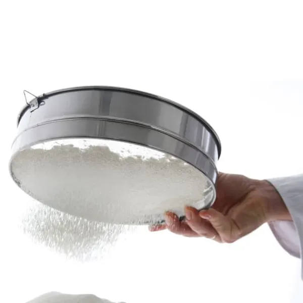 Producentnummer: 637838 Tæt konfekturesi til sigtning – lavet af rustfrit stål – med bøjle – formål: til mel Parametre: – diameter: 410 mm – højde: 80 mm Sættet indeholder: – Konfekturesi