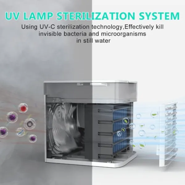 Återfukta och kyl ner inomhusklimatet. Slipp den varma hettan i sommar! Vi vet alla att varmt väder varken är bekvämt eller hälsosamt för oss. Med denna portabla luftkylare i kompakt design som är lätt att använda kan du enkelt och snabbt kyla ner hemmet. Denna smarta enheten förvandlar varm, torr och smutsig luft till svalare, renare och fräschare.