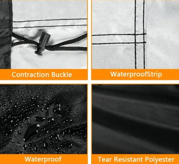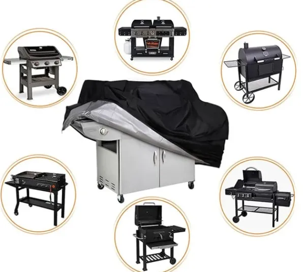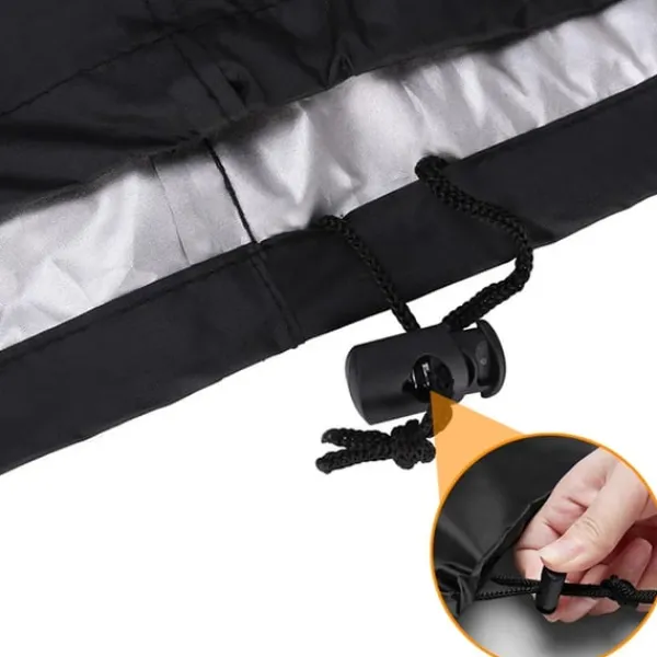 Detta svarta BBQ-grillskydd blockerar UV-strålar, är färgbeständigt och blekningsbeständigt och skyddar mot regn, slask, snö och vatten. Passar ett brett utbud av grillar och är slitstark och praktisk att använda. Fållen har en dragsko för att säkerställa säker täckning. Oavsett om det är ute i naturen eller hemma så är detta grillskydd ett bra val.
